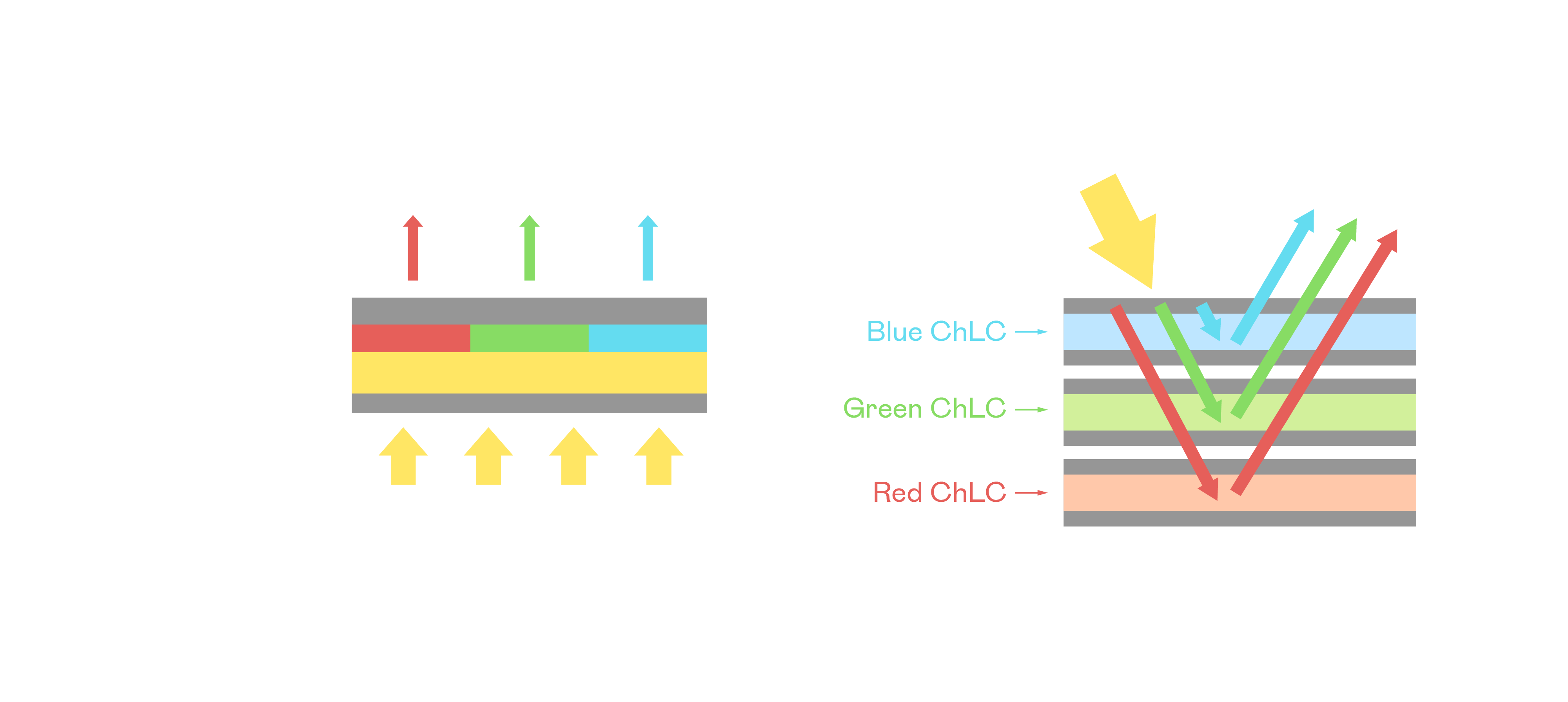 z6尊龙官方网站胆固醇液晶显示器是由红、绿、蓝三层胆固醇液晶面板堆叠而成,并采用无彩色滤光片设计,减少环境光在反射过程中的损耗。
